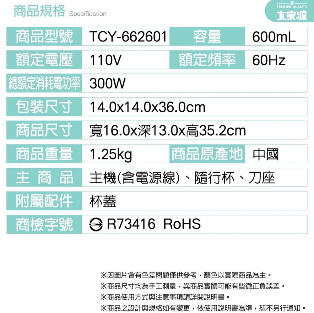 大家源 (TCY-662601) 600ml隨行杯果汁機