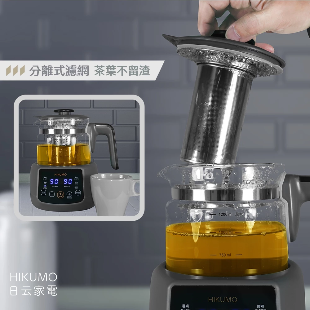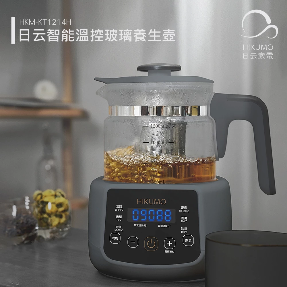 智能溫控玻璃養生壺HKM-KT1214H (附 不鏽鋼濾網杯)