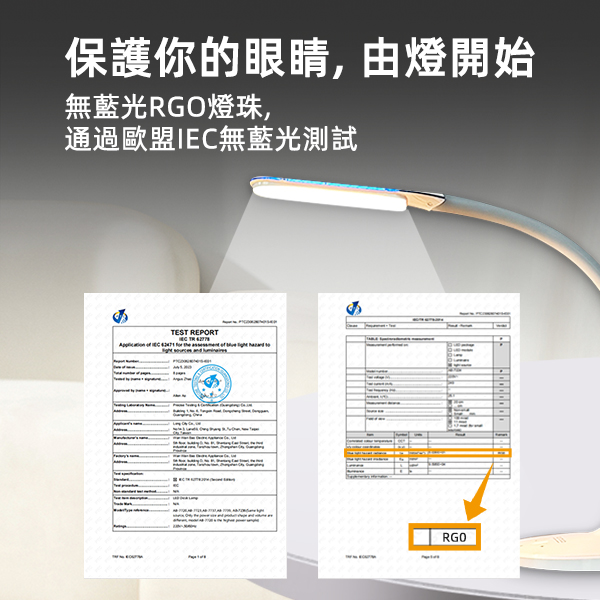 - 無藍光 通過IEC歐盟RG0測試標準