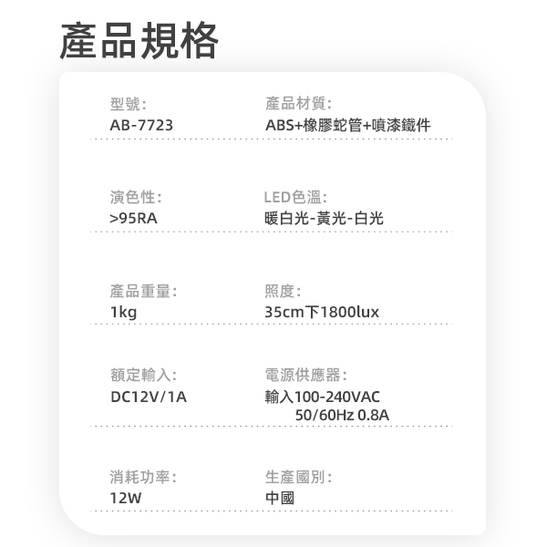 安寶 AB-7723 抗藍光護眼LED檯燈