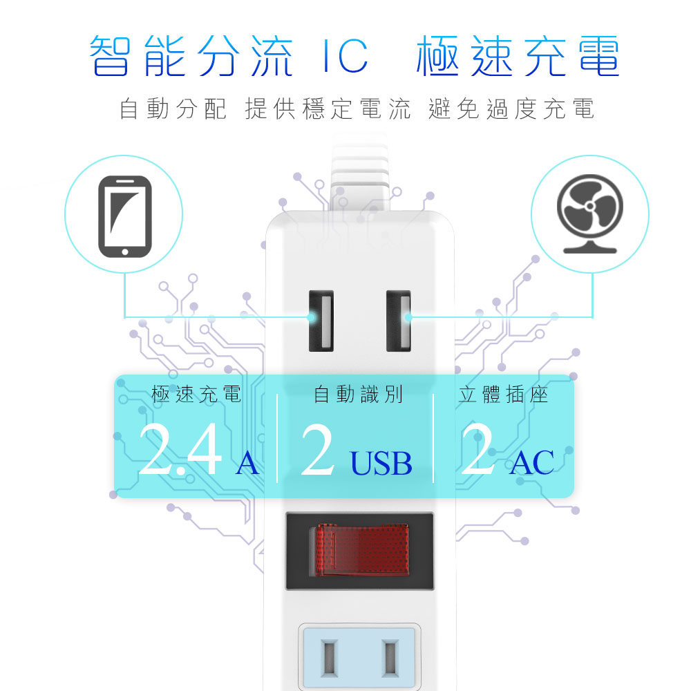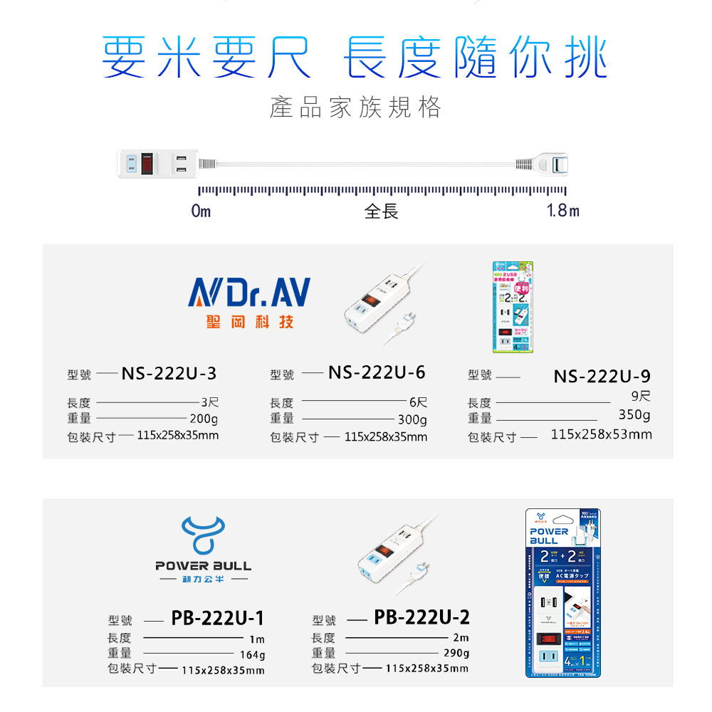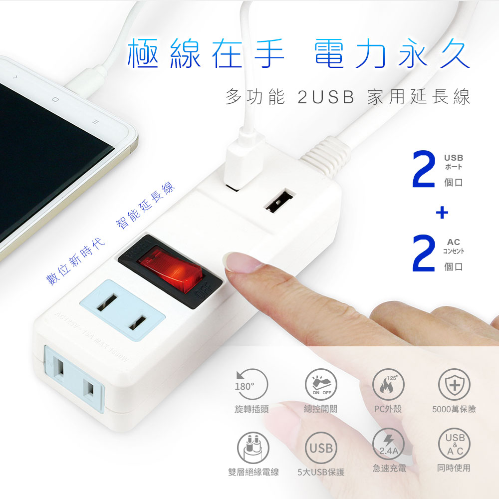 Dr.AV 聖岡科技 NS-222U 多功能2USB家用延長線