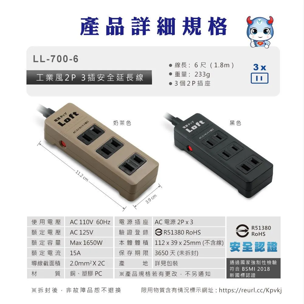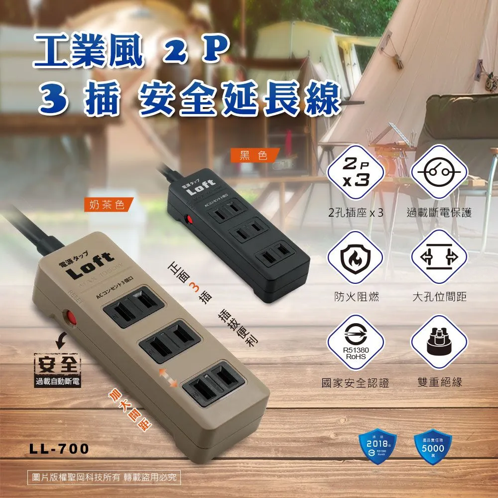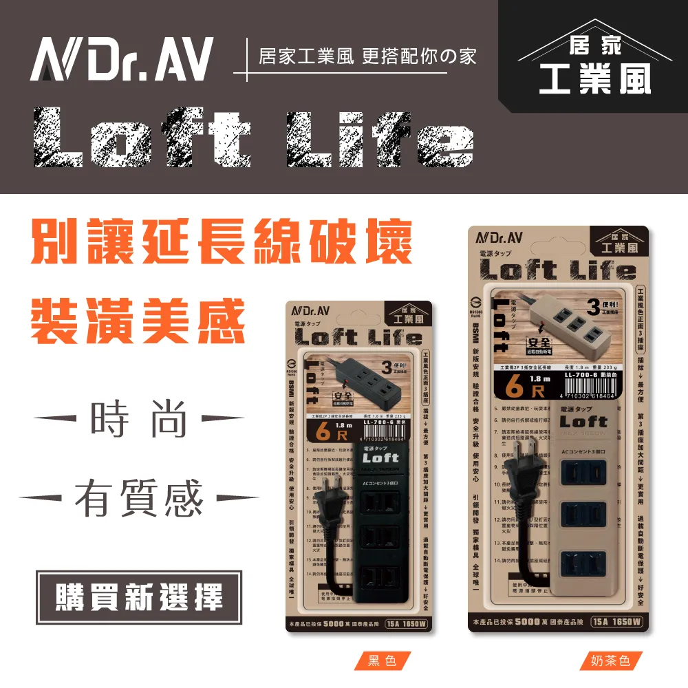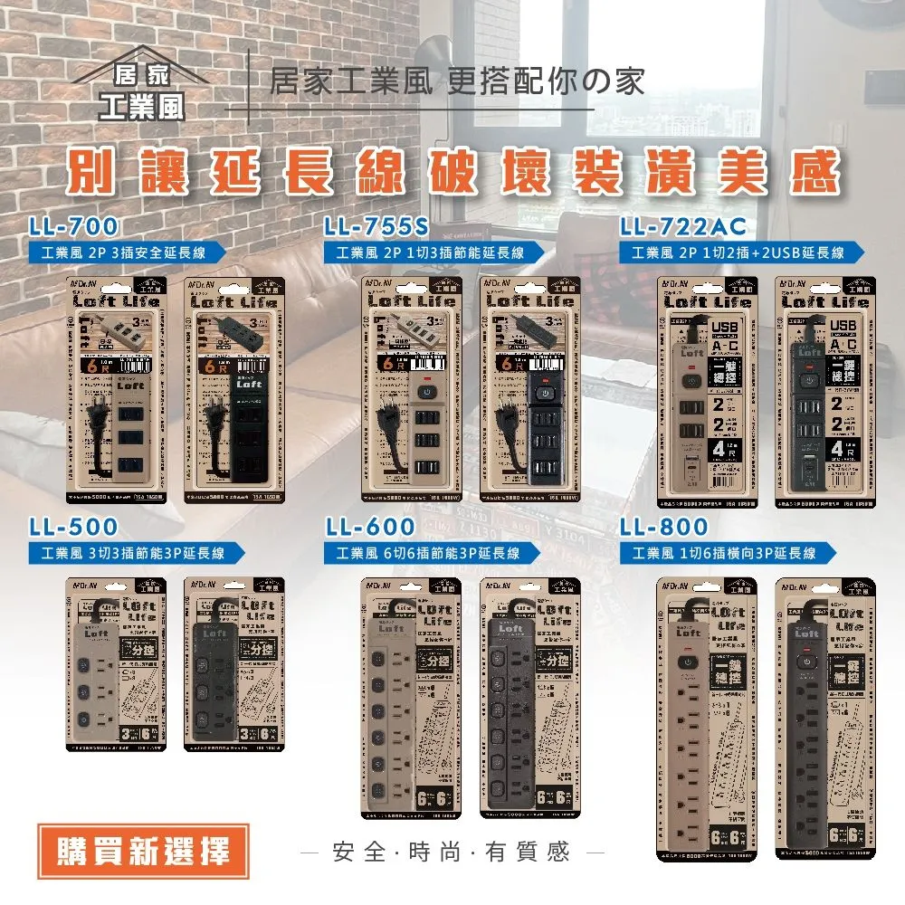 Dr.AV 聖岡 LL-700-6 工業風2P 3插安全延長線