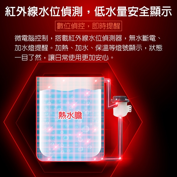 ★微電腦控制,紅外線水位偵測,無水斷電、加水燈提醒