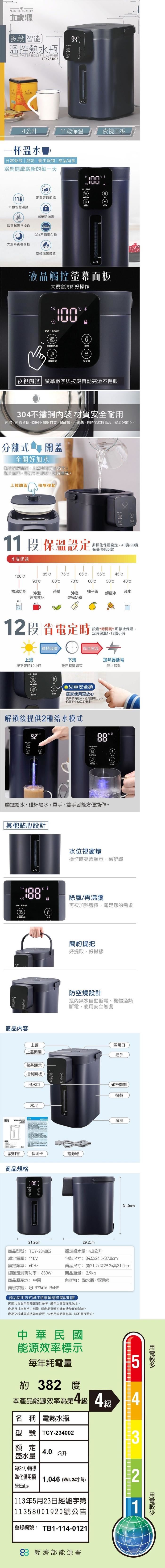 大家源 TCY-234002 / 4L多段智能溫控熱水瓶