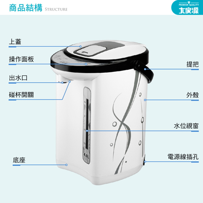 【大家源】二合一電熱水瓶(4L) TCY-2034 |