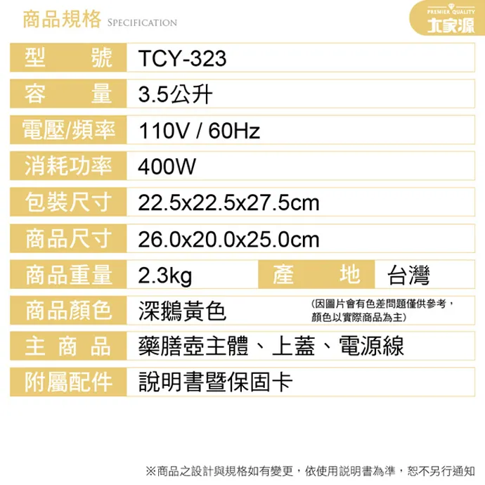 大家源 TCY-323 / 3.5L 陶瓷藥膳壼