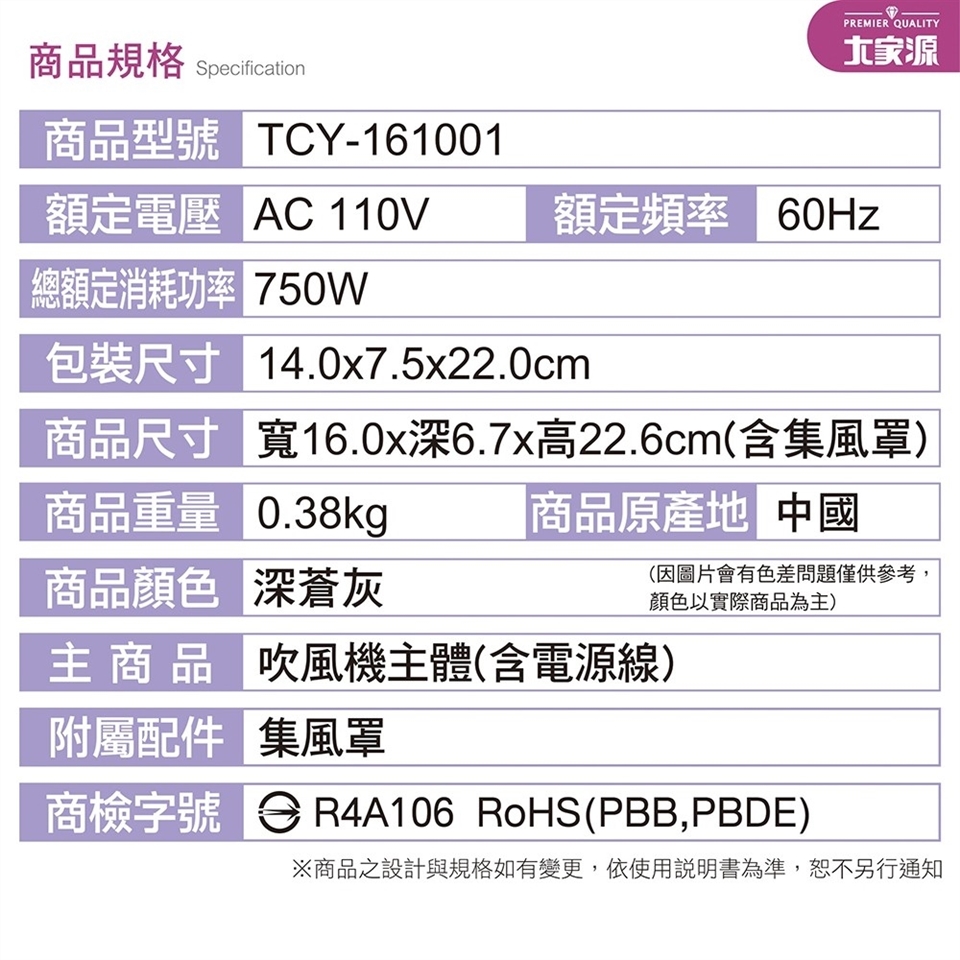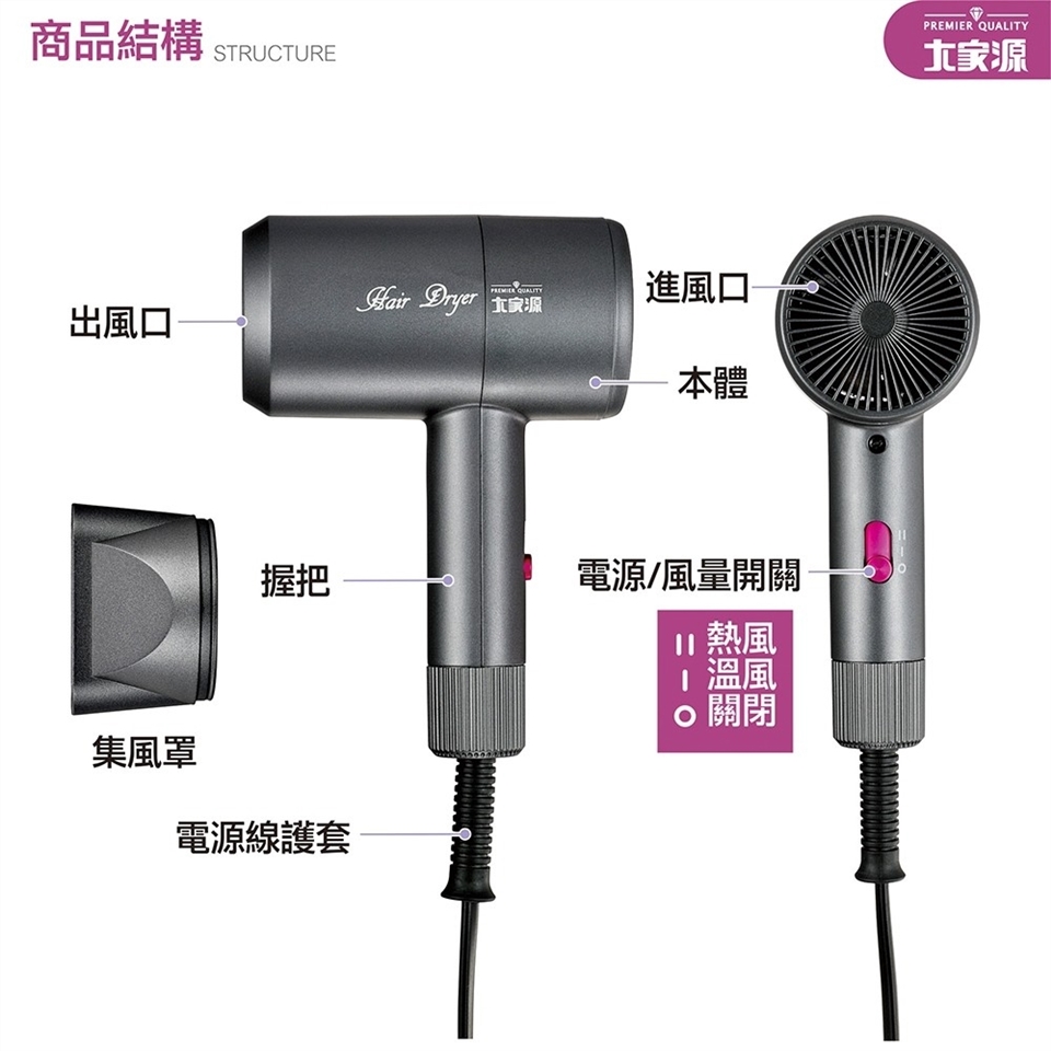 大家源 二段輕盈質感吹風機 TCY-161001 |