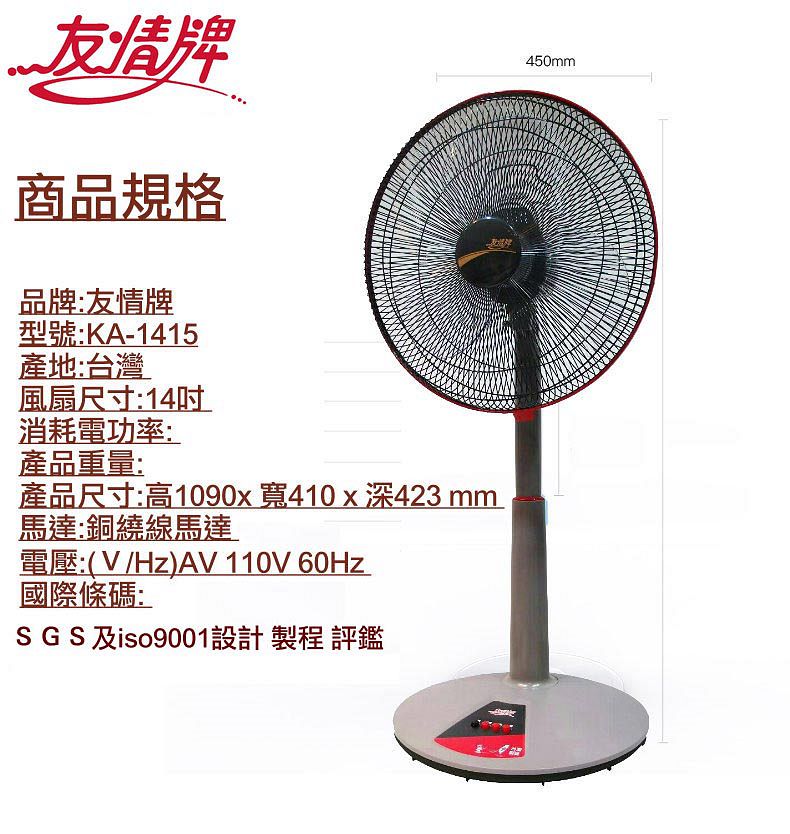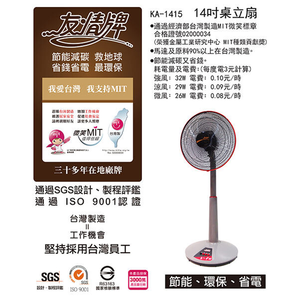 友情 KA-1415 "節能"桌立兩用扇 14吋