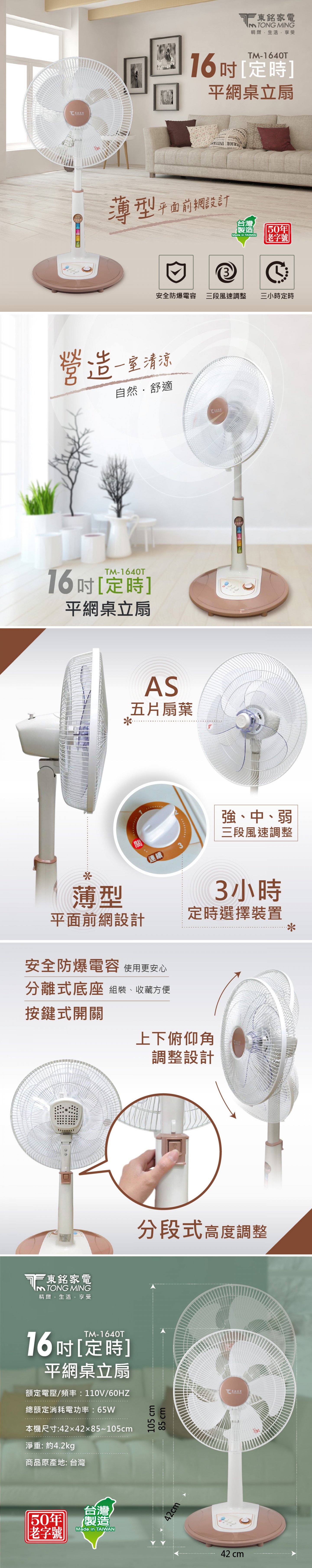 東銘16吋定時平網桌立扇 TM-1640T