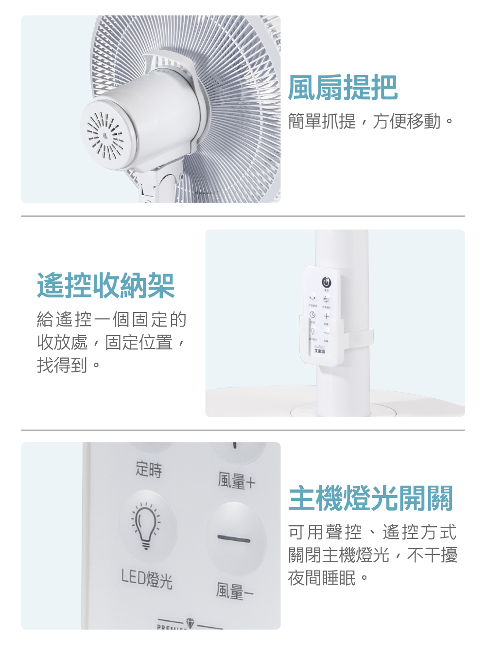 (3) 觸控面板,3種模式(睡眠風、自然風、正常風),12段風速調整。