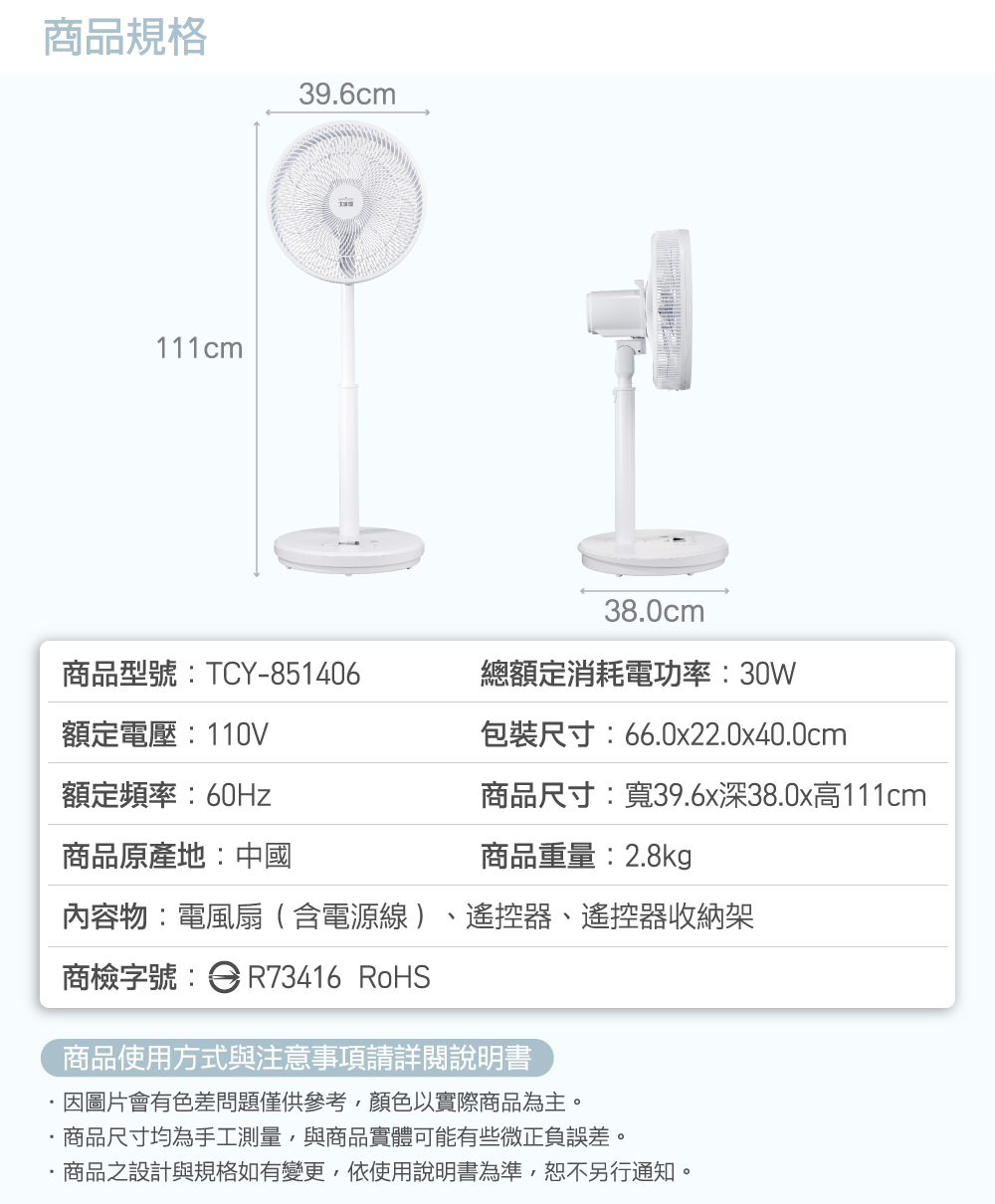 大家源 TCY-851406 / 14吋智慧聲控DC風扇