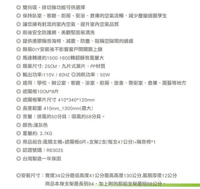 【永用牌】MIT台灣製造10吋室內窗型吸排風扇