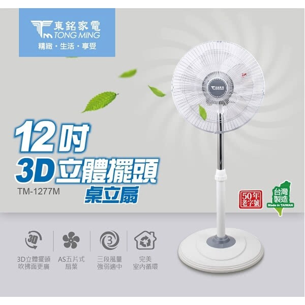 東銘 TM-1277M / 12吋3D立體擺頭桌立扇