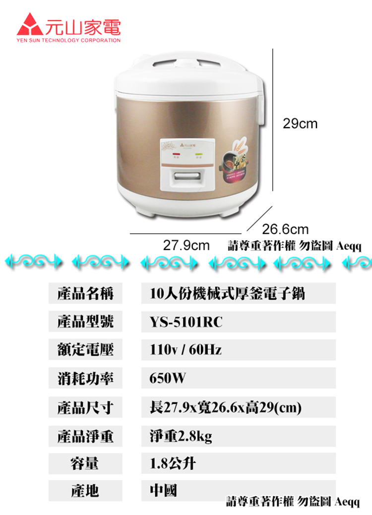 元山 YS-5101RC / 10人份厚釜電子鍋(金)