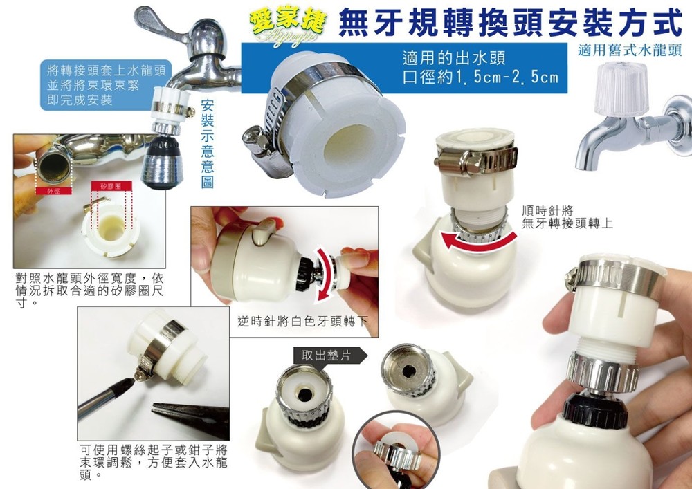 廚房水龍頭出水口無牙規萬能轉接頭 |