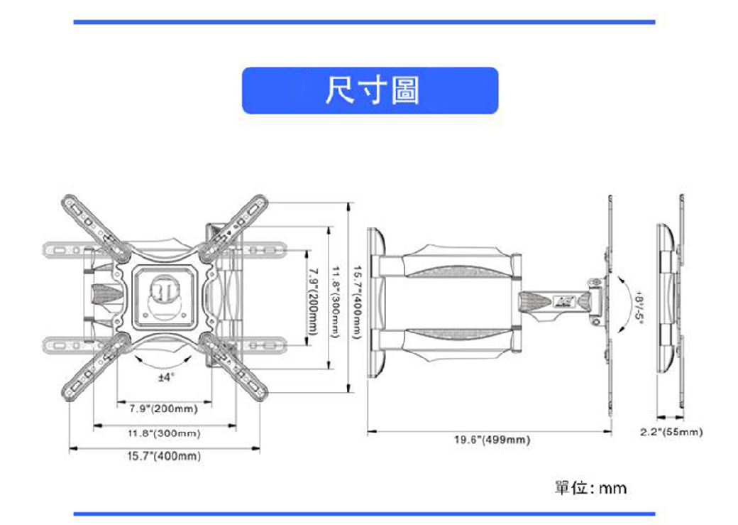 【NB】P4/32-55吋可調角度液晶電視旋臂架