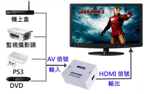 AV轉HDMI 轉換器(AV2HDMI) AV轉換器 AV轉高清 轉接器 轉接盒 1080P |