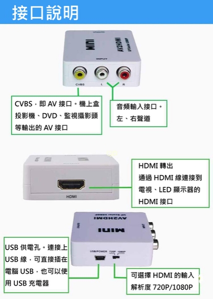 AV轉HDMI 轉換器(AV2HDMI) AV轉換器 AV轉高清 轉接器 轉接盒 1080P