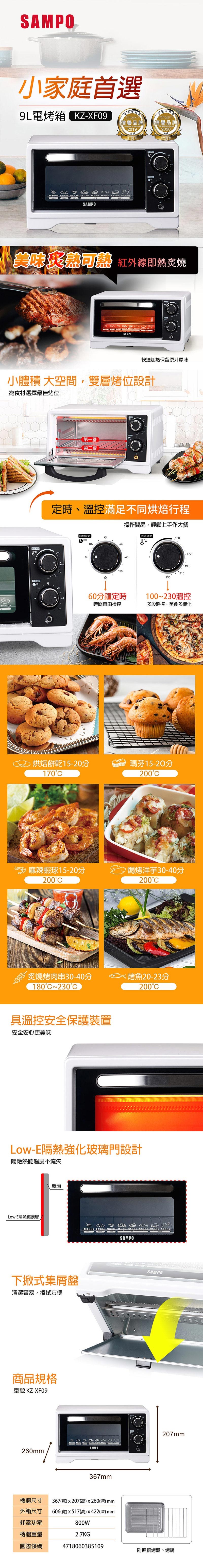 SAMPO聲寶 9公升多功能溫控定時電烤箱 KZ-XF09 |
