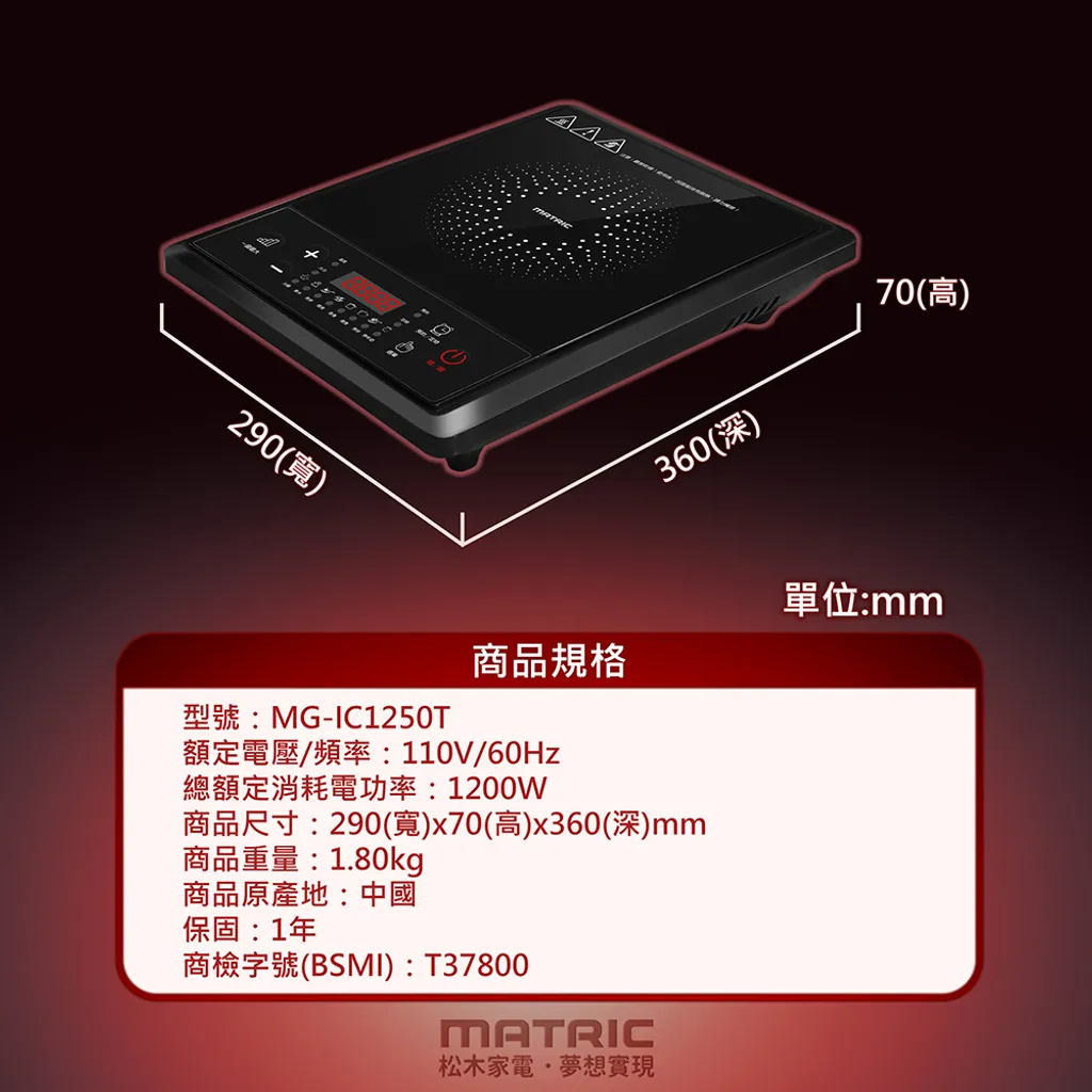 【MATRIC】松木 MG-IC1250T 經典 IH 電磁爐