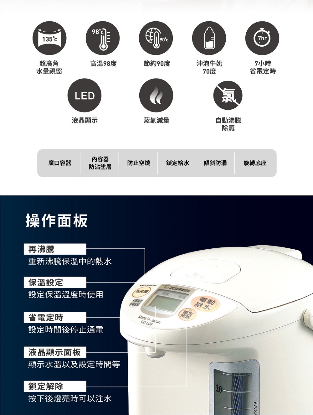 ZOJIRUSHI象印 三段定溫中文液晶微電腦熱水瓶
