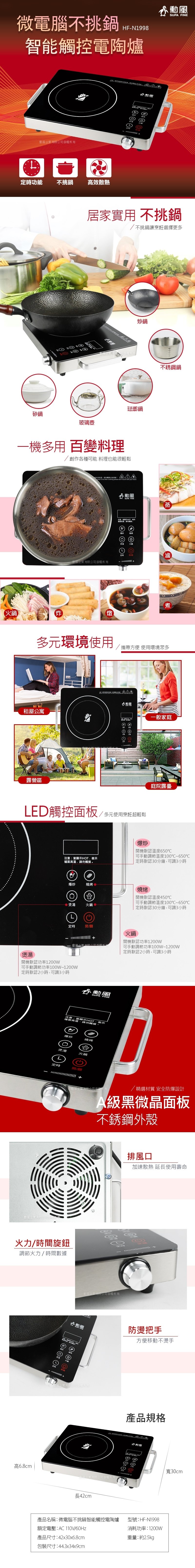 勳風微電腦不挑鍋智能觸控電陶爐HF-N1998 |