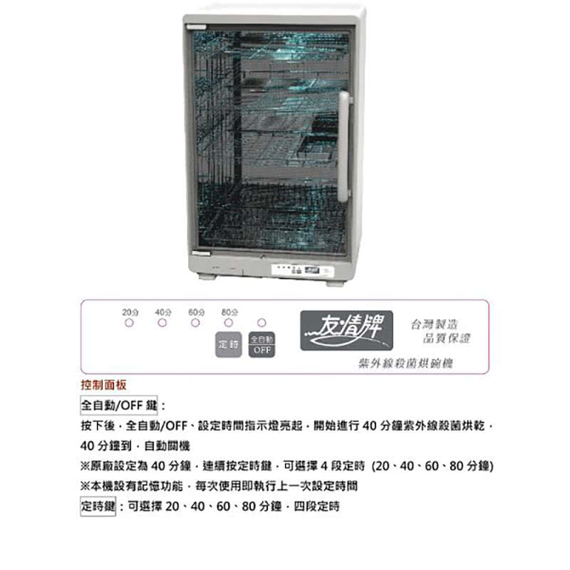 【友情牌】PF-6180 紫外線烘碗機(119公升超大四層) 「內裝使用#304BA不鏽鋼鏡面材質」