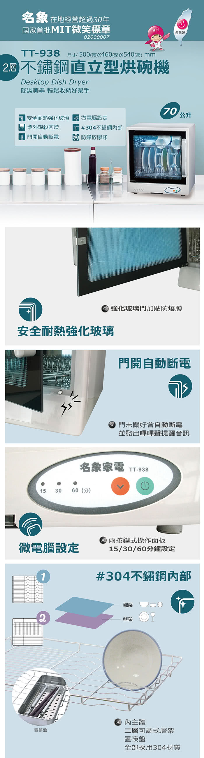 MIN SHIANG 名象紫外線殺菌烘碗機 TT-938~台灣製 |