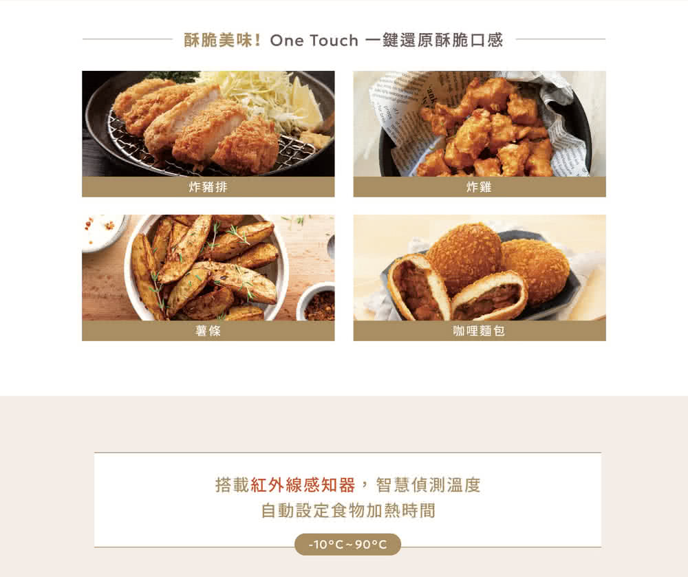 (4)喜好溫度-10~90℃,紅外線感知器精準加熱。