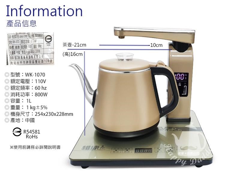 【維康 WK-1070】1L微電腦自動補水泡茶機(內附遙控器)
