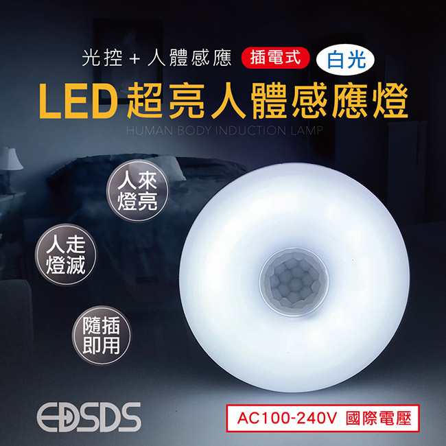 【愛迪生】插頭式國際電壓LED感應燈(EDS-G732)■額定電壓 : AC 100-240V;50/60Hz |