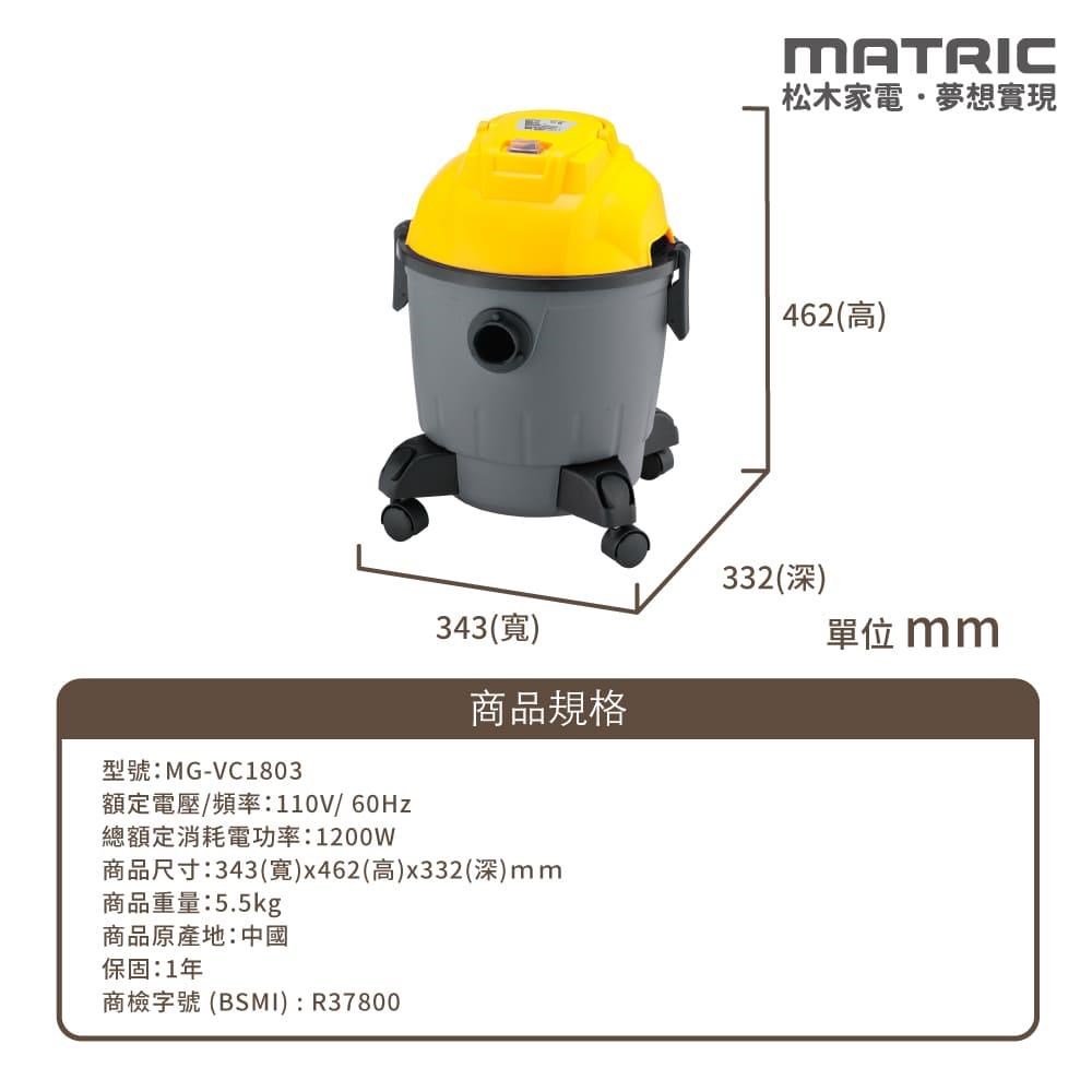 松木 MG-VC1803「乾濕吹」18L大容量筒式吸塵器
