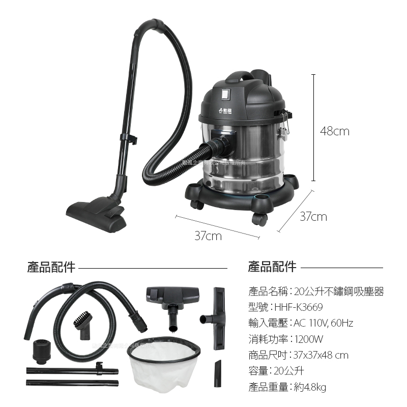 勳風 HHF-K3669 乾濕吹營業用不鏽鋼吸塵器