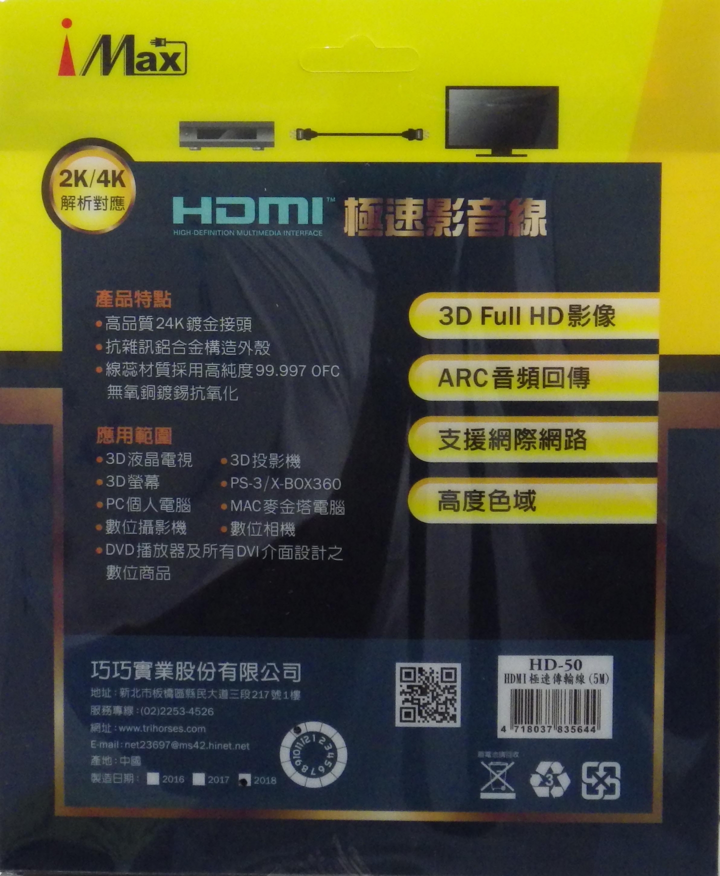 iMAX HDMI 急速傳輸線(扁線吊卡式)