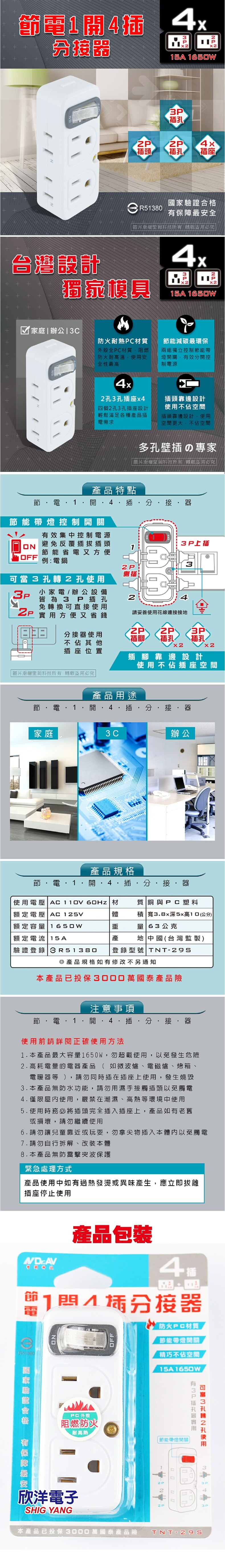 聖岡科技 節電1開4插分接器/阻燃防火 (TNT-29S) |