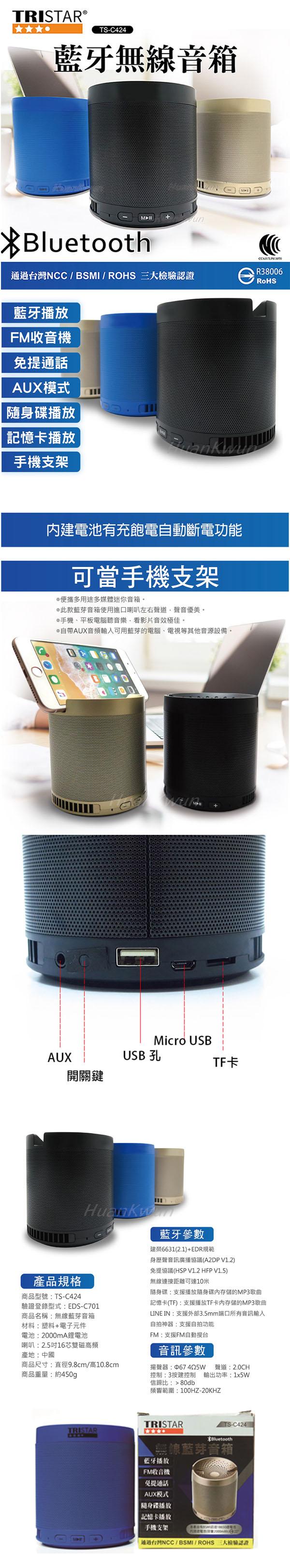 TRISTAR 藍芽音響可插卡/隨身碟 TS-C424/EDS-C424 ◎主商品:藍芽喇叭x1 |