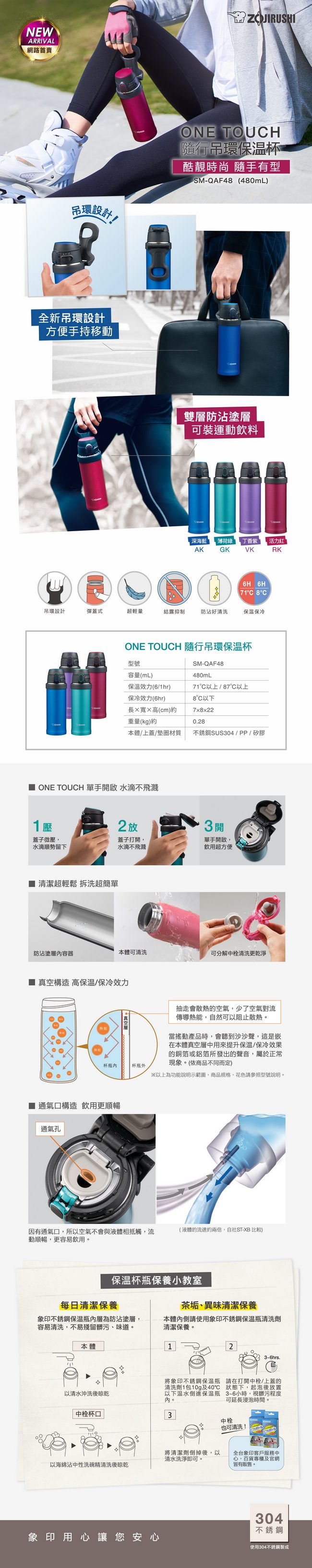象印*0.48L*吊環彈蓋式不鏽鋼真空保溫杯(SM-QAF48) |