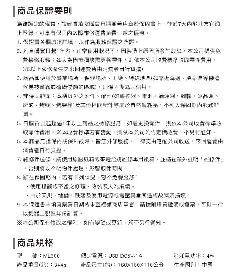 【NORTHERN 北方 ML300】USB吸入式捕蚊燈