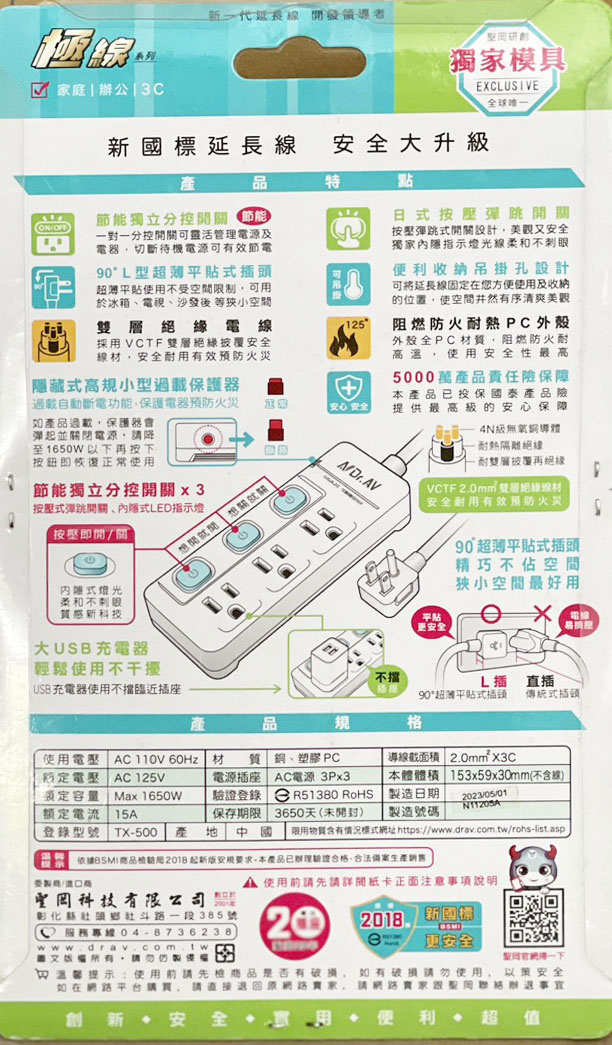 90度L行超薄平貼式插頭,超薄名貼使用不受空間限制,可用於冰箱、電視、沙發後等狹小空間
